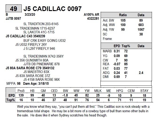 Well you know what they say, “you can’t put them all first.” This Cadillac son is rock steady with a tremendous total shape. He may be a bit more of a cowboy type of bull than some other bulls in the sale. He does like it when Sydney scratches his head though.