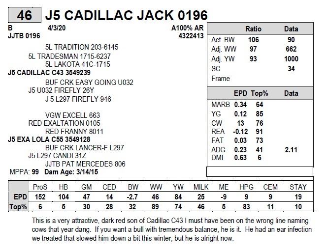 This is a very attractive, dark red son of Cadillac C43 I must have been on the wrong line naming cows that year dang. If you want a bull with tremendous balance, he is it. He had an ear infection we treated that slowed him down a bit this winter, but he is alright now.