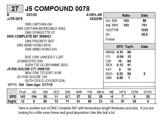 Here is another son of DKK Complete 887 with tremendous length thickness and style. If you are looking for a little more frame and good disposition I like this bull a lot.