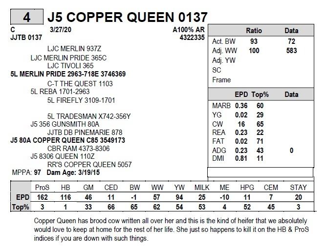 Copper Queen has brood cow written all over her and this is the kind of heifer that we absolutely would love to keep at home for the rest of her life. She just so happens to kill it on the HB & ProS indices if you are down with such things.