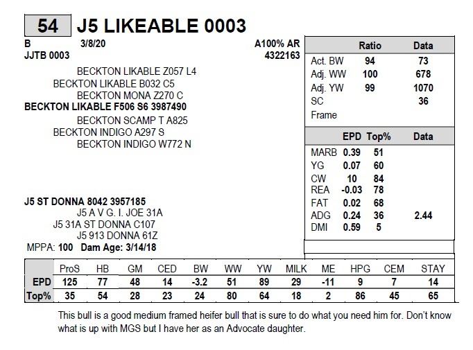This bull is a good medium framed heifer bull that is sure to do what you need him for. Don’t know what is up with MGS but I have her as an Advocate daughter.