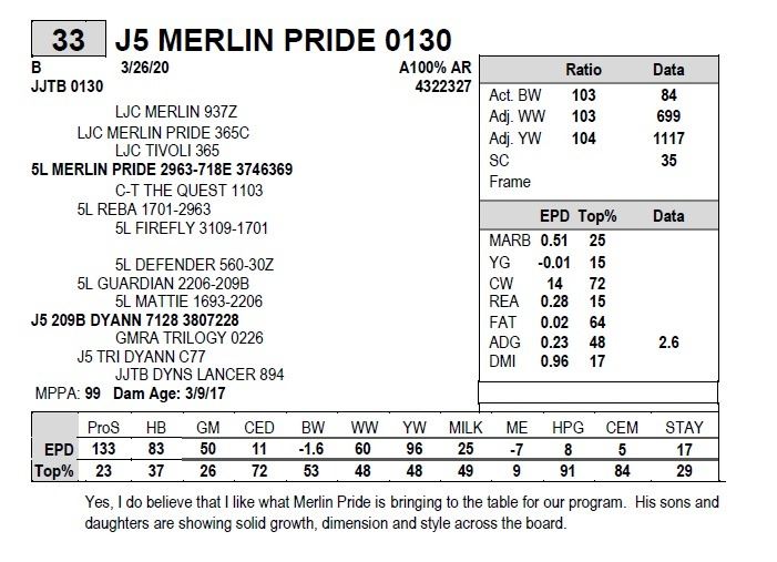 Yes, I do believe that I like what Merlin Pride is bringing to the table for our program. His sons and daughters are showing solid growth, dimension and style across the board.