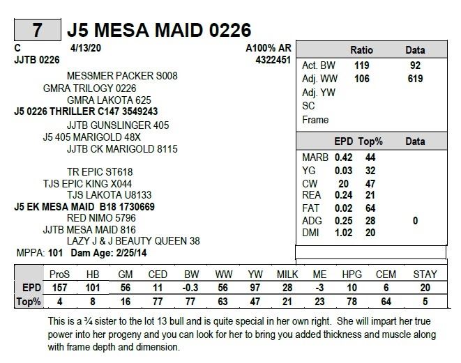 This is a ¾ sister to the lot 13 bull and is quite special in her own right. She will impart her true power into her progeny and you can look for her to bring you added thickness and muscle along with frame depth and dimension.