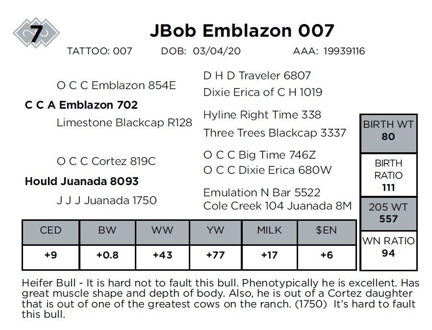 Heifer Bull - It is hard not to fault this bull. Phenotypically he is excellent. Has