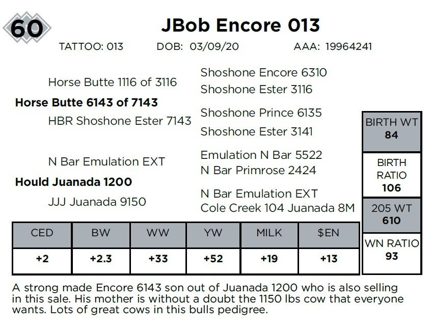 A strong made Encore 6143 son out of Juanada 1200 who is also selling