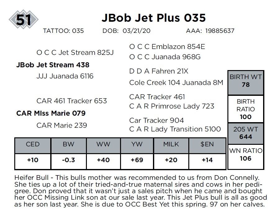 her OCC Missing Link son at our sale last year. This Jet Plus bull is all as good