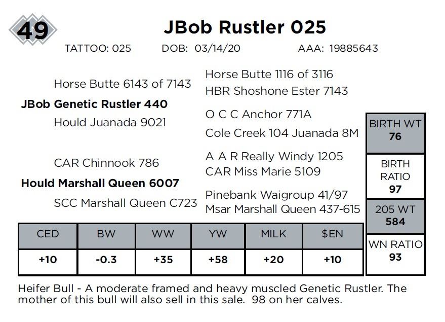 Heifer Bull - A moderate framed and heavy muscled Genetic Rustler. The