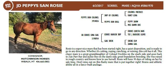 in rough country and knows how to use herself. Rosie will have 30 days of riding on her by
