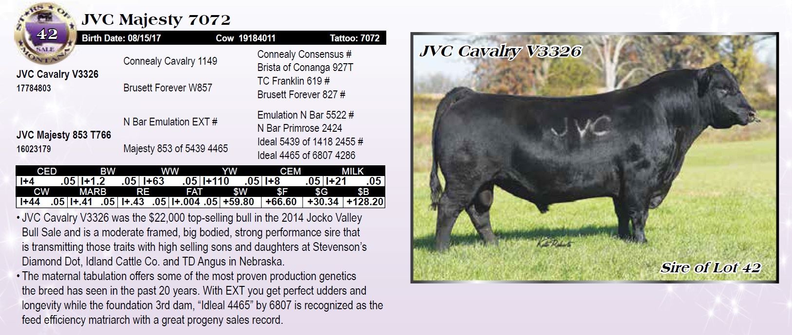 • JVC Cavalry V3326 was the $22,000 top-selling bull in the 2014 Jocko Valley