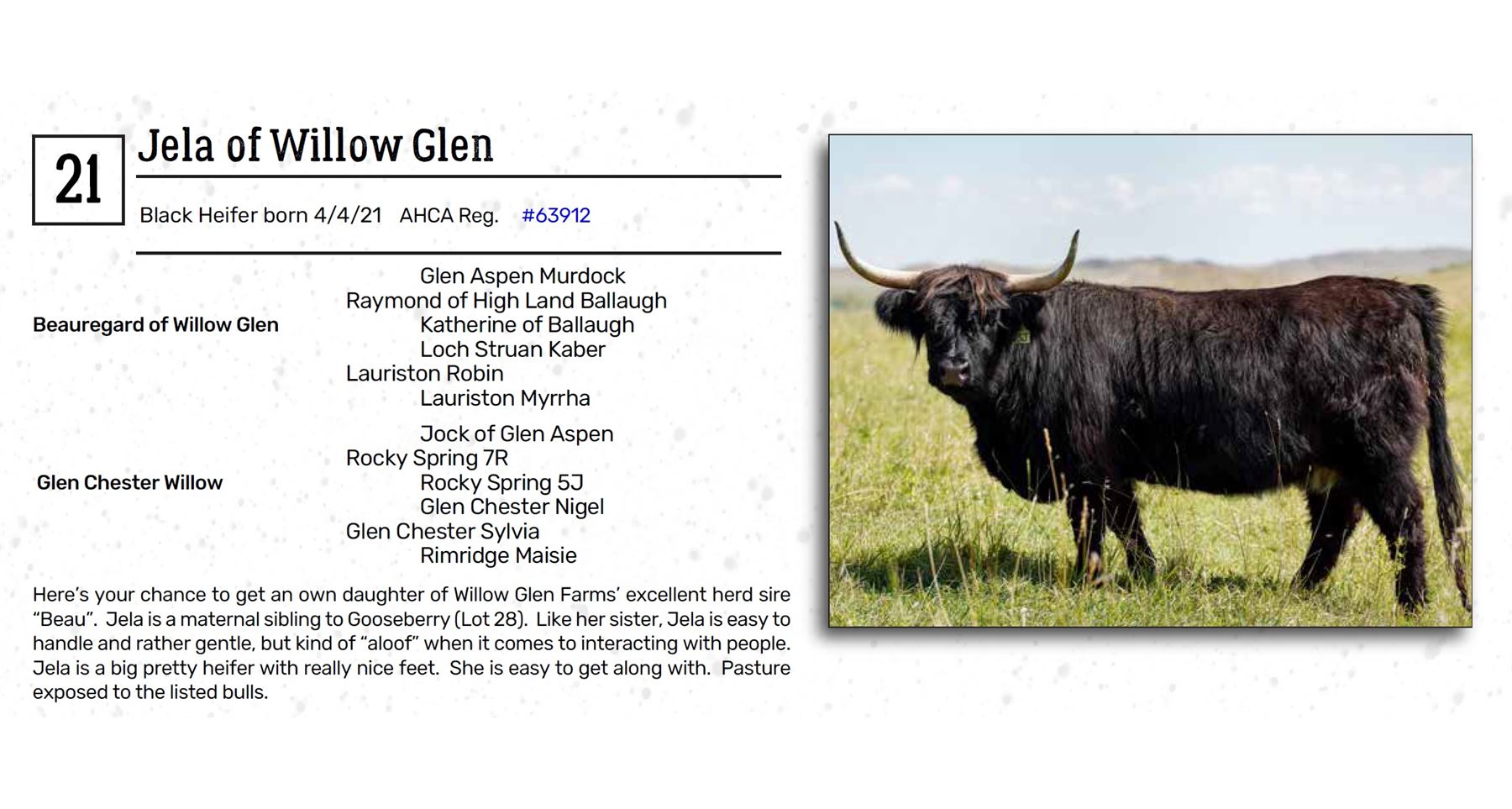 Here’s your chance to get an own daughter of Willow Glen Farms’ excellent herd sire