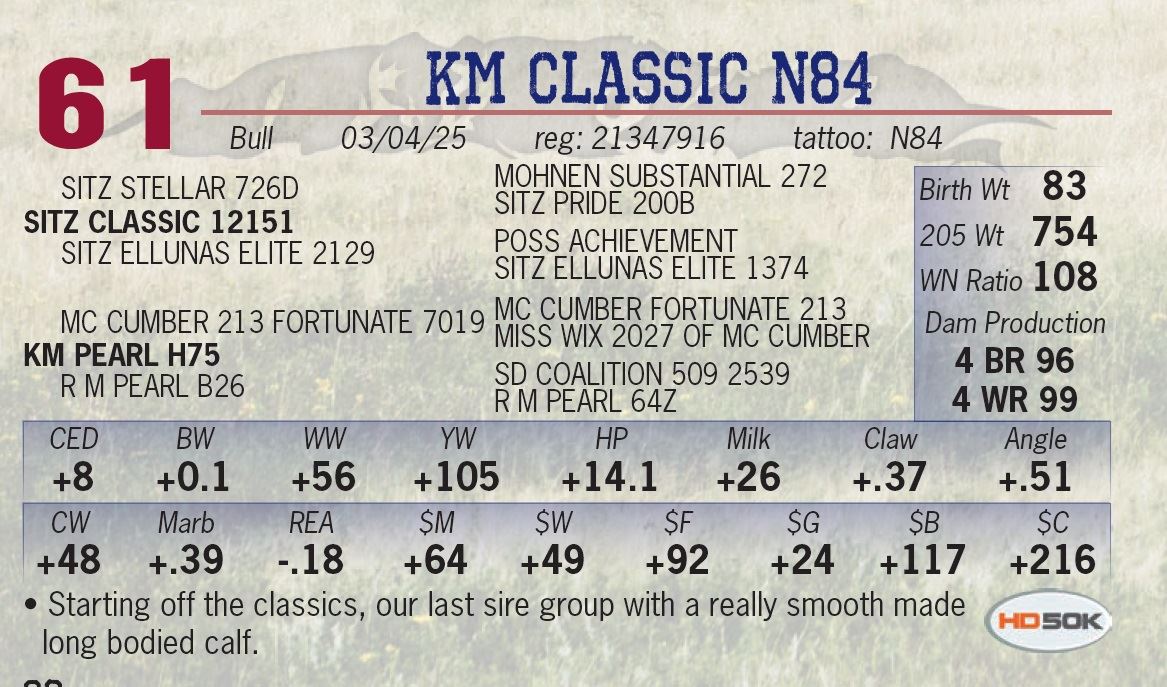 All bulls sell with ½ semen interest and full possession.