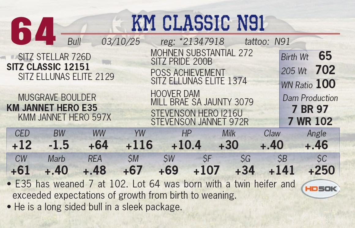 • E35 has weaned 7 at 102. Lot 64 was born with a twin heifer and