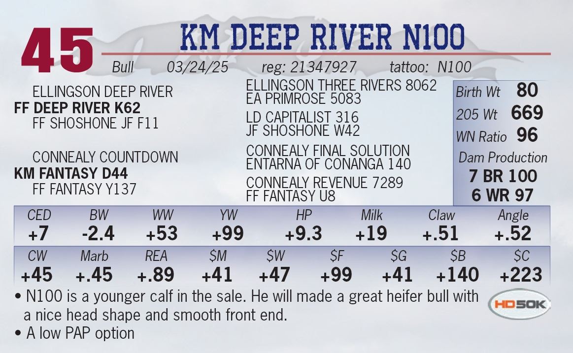 • N100 is a younger calf in the sale. He will made a great heifer bull with
