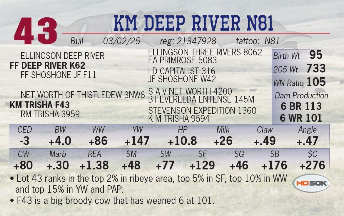 • Lot 43 ranks in the top 2% in ribeye area, top 5% in $F, top 10% in WW