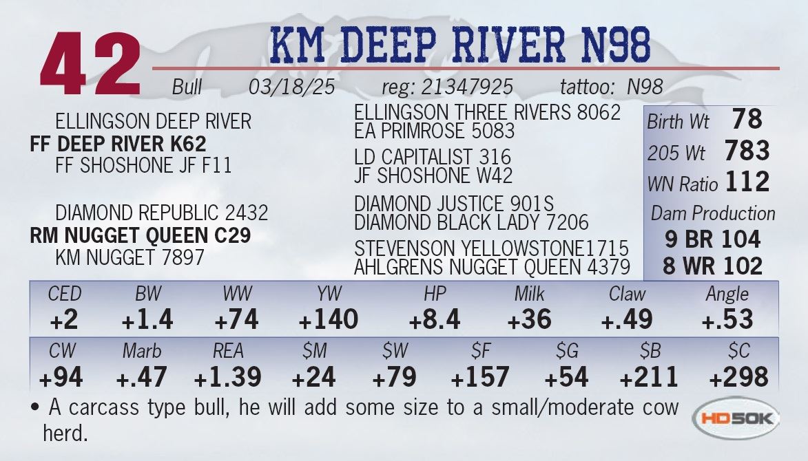 All bulls sell with ½ semen interest and full possession.