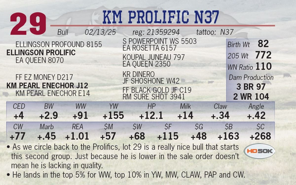 • As we circle back to the Prolifics, lot 29 is a really nice bull that starts