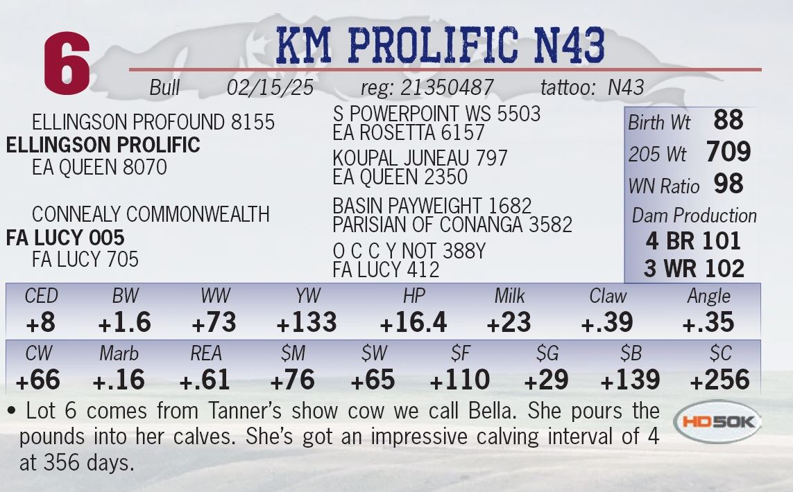 • Lot 6 comes from Tanner’s show cow we call Bella. She pours the