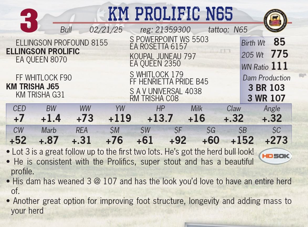 • Lot 3 is a great follow up to the first two lots. He’s got the herd bull look!