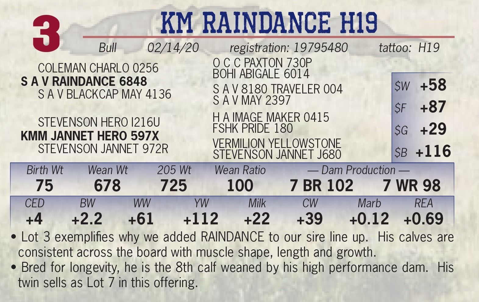 • Lot 3 exemplifies why we added RAINDANCE to our sire line up. His calves are