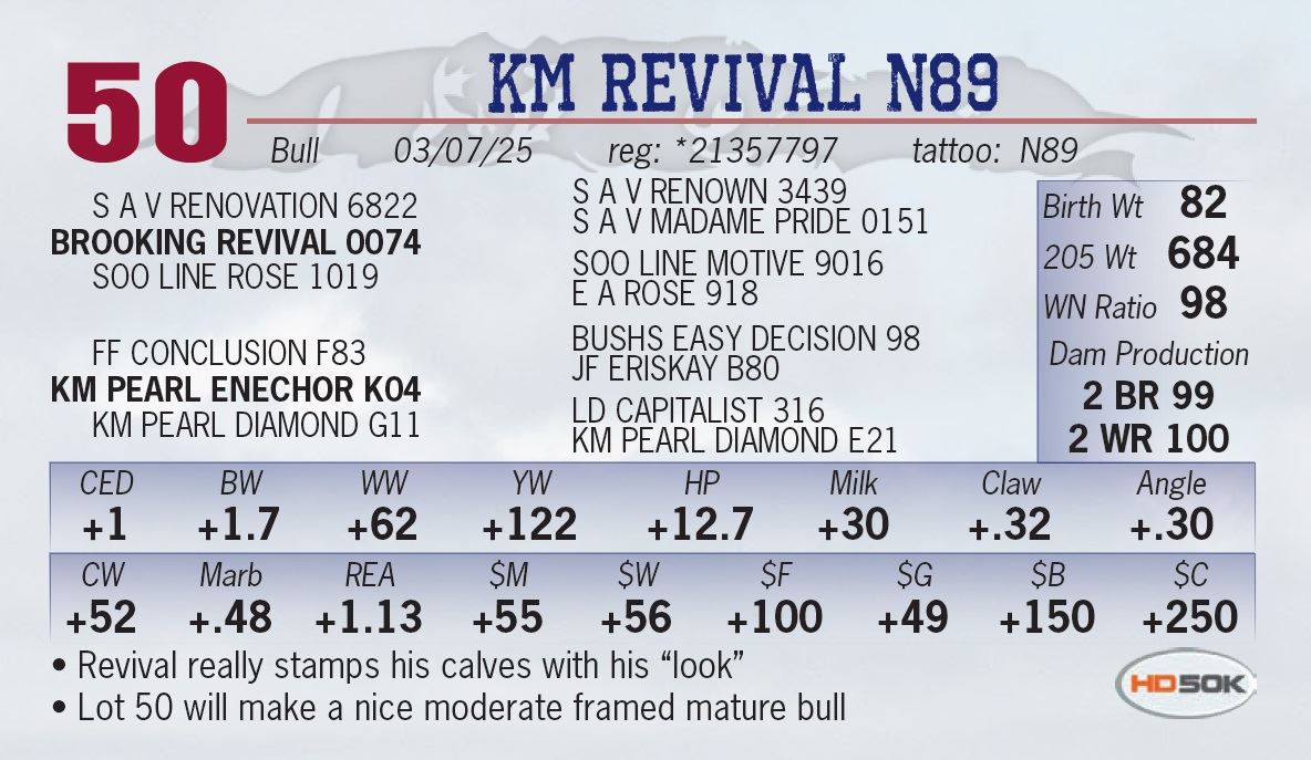 • Lot 50 will make a nice moderate framed mature bull