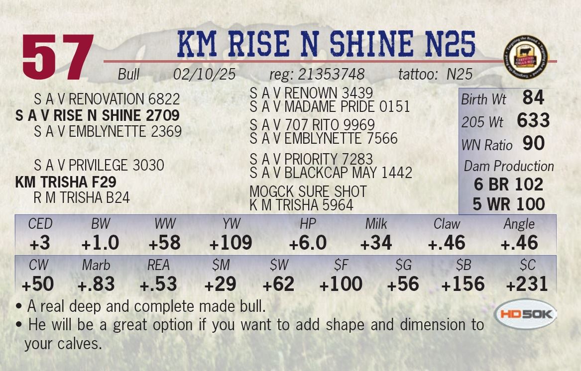 All bulls sell with ½ semen interest and full possession.