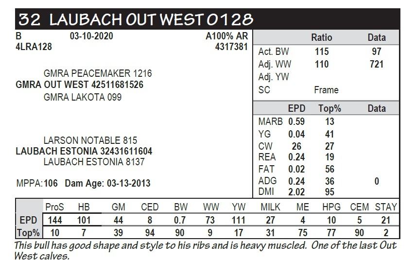 This bull has good shape and style to his ribs and is heavy muscled. One of the last Out