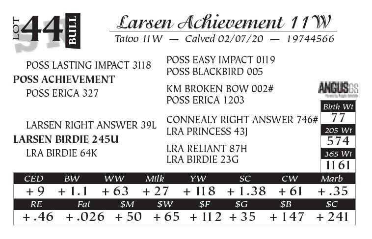 Please contact Larsen Ranch Angus after the sale to settle purchases!