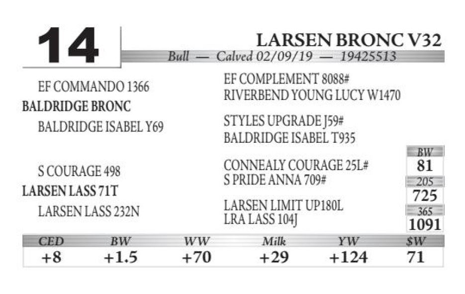 Please contact Larsen Ranch Angus after the sale to settle purchases!