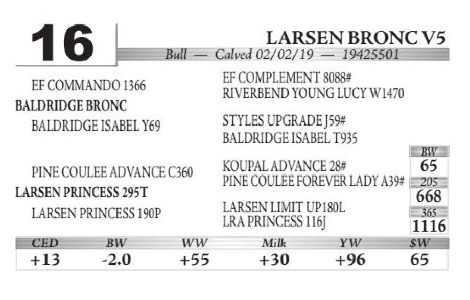 Please contact Larsen Ranch Angus after the sale to settle purchases!