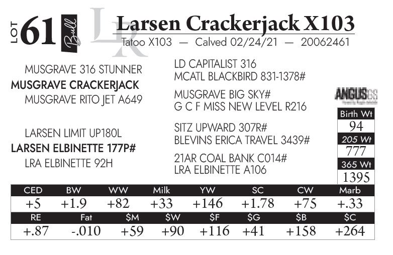 Please contact Larsen Ranch Angus after the sale to settle purchases!