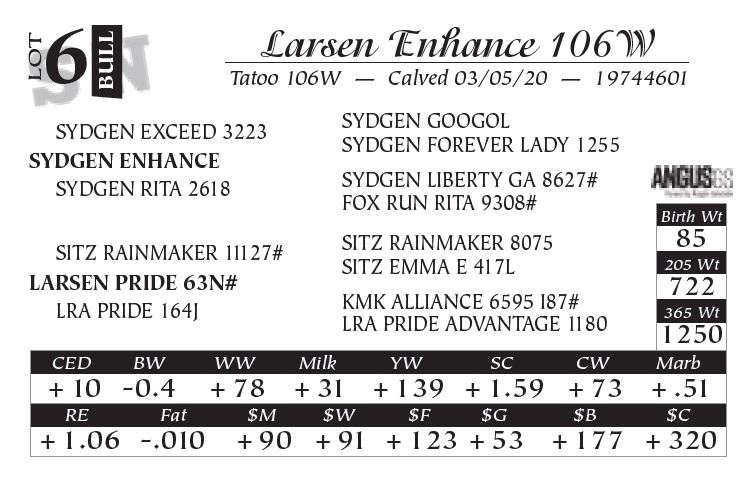 Please contact Larsen Ranch Angus after the sale to settle purchases!