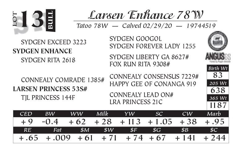Please contact Larsen Ranch Angus after the sale to settle purchases!