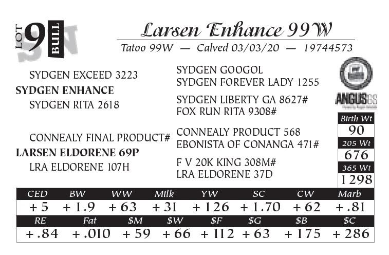 Please contact Larsen Ranch Angus after the sale to settle purchases!