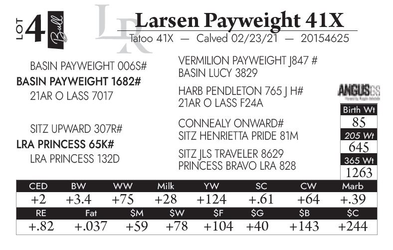 Please contact Larsen Ranch Angus after the sale to settle purchases!