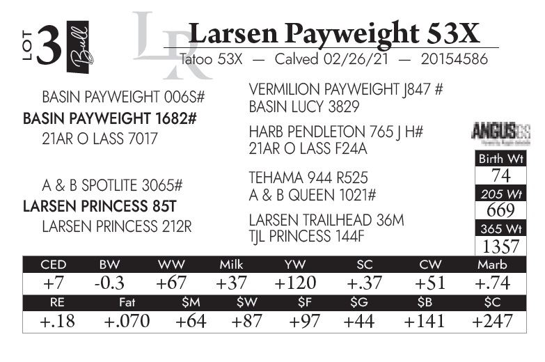 Please contact Larsen Ranch Angus after the sale to settle purchases!