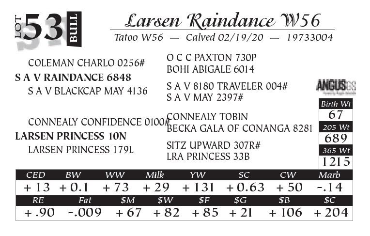 Please contact Larsen Ranch Angus after the sale to settle purchases!