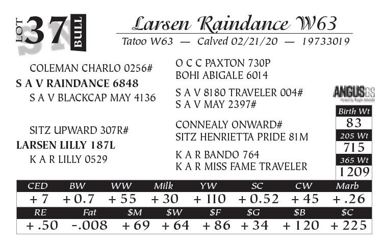 Please contact Larsen Ranch Angus after the sale to settle purchases!