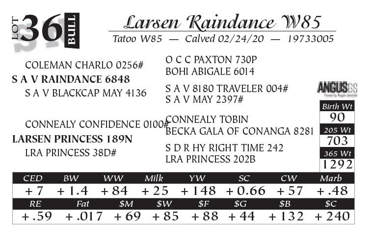 Please contact Larsen Ranch Angus after the sale to settle purchases!