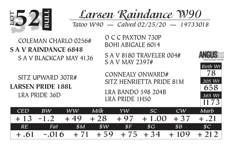 Please contact Larsen Ranch Angus after the sale to settle purchases!