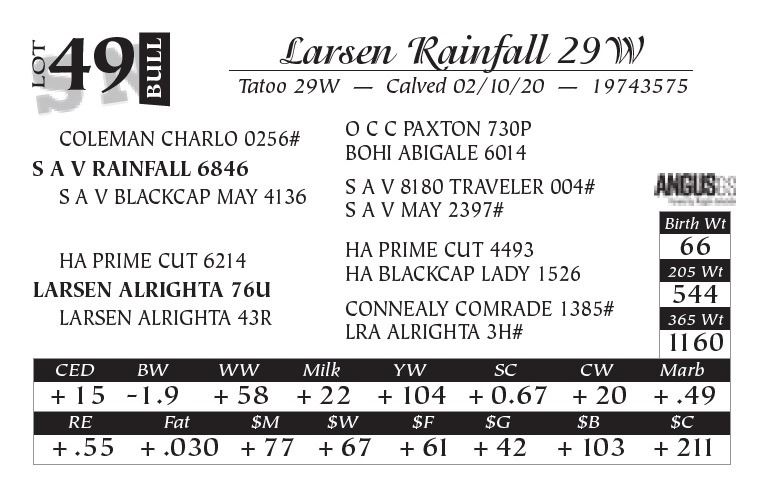 Please contact Larsen Ranch Angus after the sale to settle purchases!