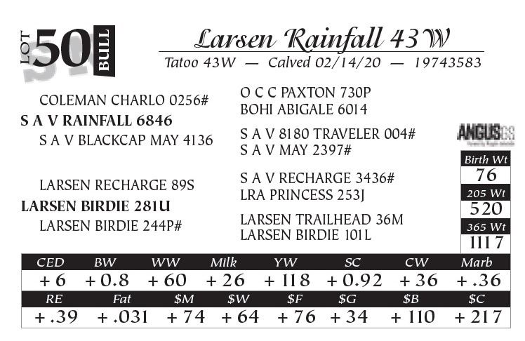 Please contact Larsen Ranch Angus after the sale to settle purchases!