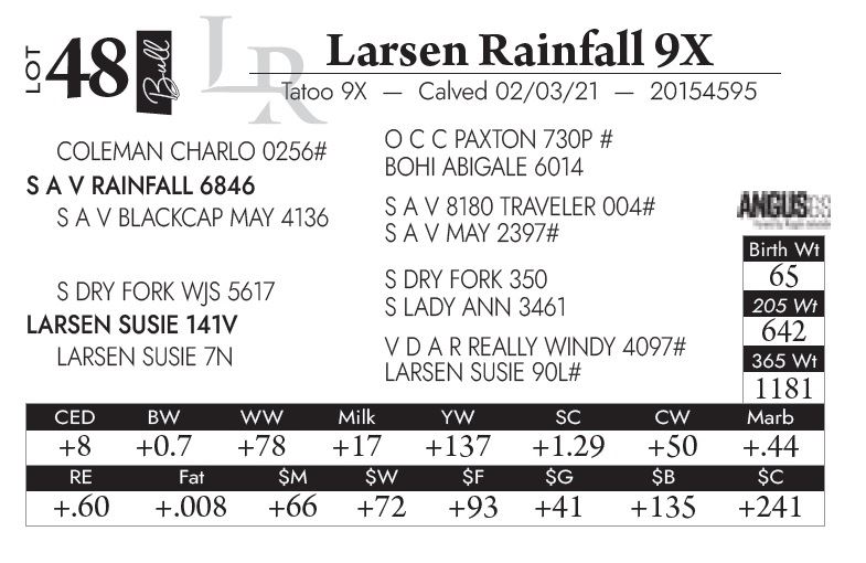 Please contact Larsen Ranch Angus after the sale to settle purchases!