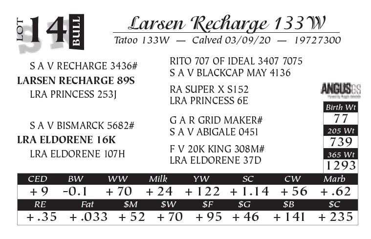 Please contact Larsen Ranch Angus after the sale to settle purchases!
