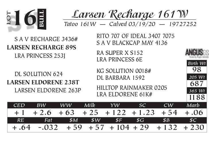 Please contact Larsen Ranch Angus after the sale to settle purchases!