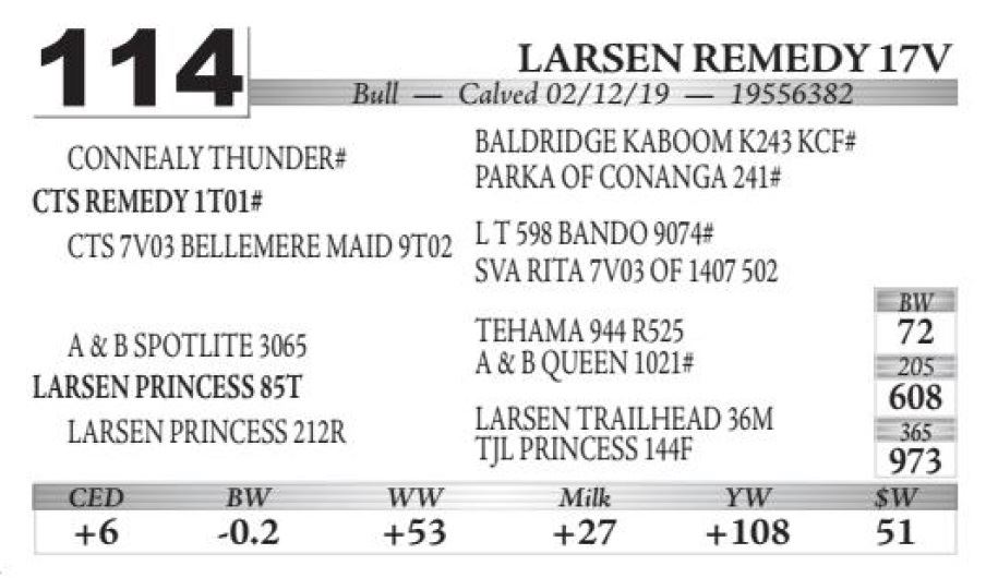 Please contact Larsen Ranch Angus after the sale to settle purchases!