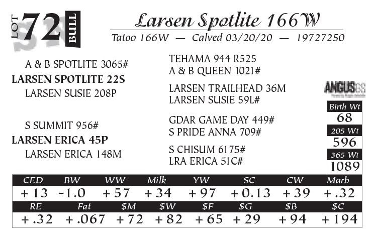 Please contact Larsen Ranch Angus after the sale to settle purchases!
