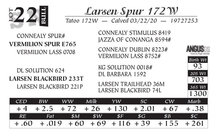 Please contact Larsen Ranch Angus after the sale to settle purchases!