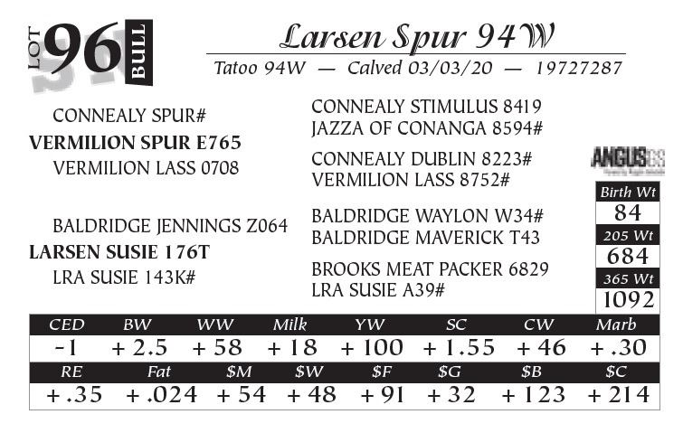 Please contact Larsen Ranch Angus after the sale to settle purchases!