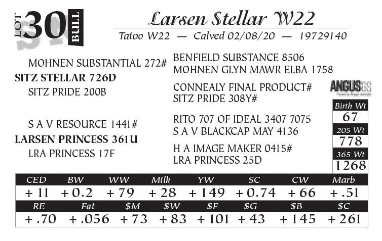 Please contact Larsen Ranch Angus after the sale to settle purchases!