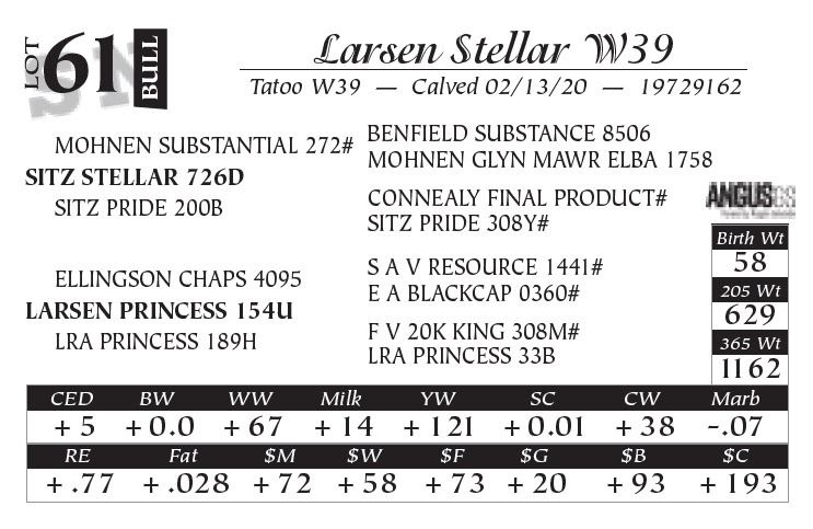 Please contact Larsen Ranch Angus after the sale to settle purchases!